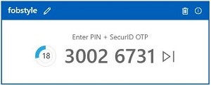 SecurID OTP 자격 증명을 사용하면 PIN(알고 있는 것) 및 SecurID OTP(가지고 있는 것)를 사용하여 조직의 보호 리소스에 안전하게 로그인할 수 있습니다. Microsoft Store에서 이 아이콘으로 표시되는 SecurID Authenticator에서 SecurID OTP 자격 증명을 사용하십시오.