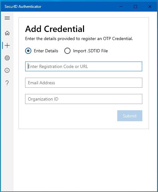 Você pode adicionar até dez credenciais no SecurID Authenticator. Seu administrador deve enviar a você um novo Código de registro para cada credencial.