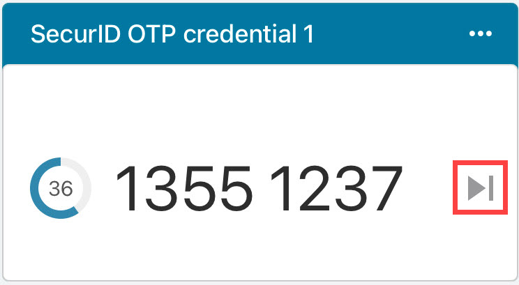 在 VPN 客户端或软件令牌中,输入或复制(单击)应用中显示的下一个 OTP 凭据代码。