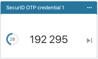 SecurID OTP 凭据可帮助您使用 PIN(您知道的东西)和 OTP 凭据代码(您拥有的东西)安全地登录组织凭据。将您的 SecurID OTP 凭据与 SecurID Authenticator 应用结合使用,该应用在 App Store 中用此图标表示: